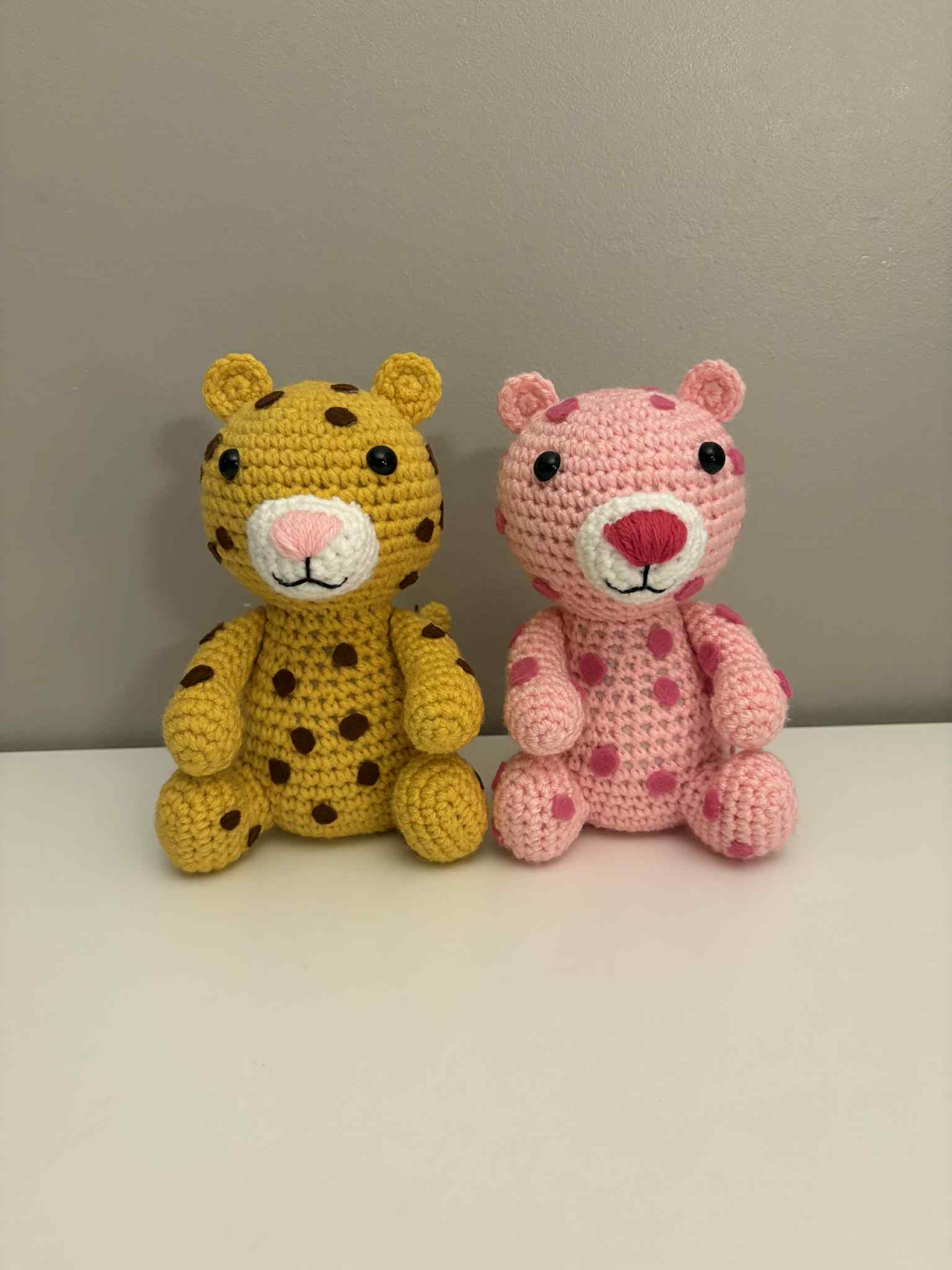 Meet our playful crochet jaguars β€” soft, colorful, and full of personality! Each one is handmade with care and features cute little spots, tiny ears, and a cozy squishy feel. Choose between a bright yellow jaguar or a fun pink one, both perfect for gifting or adding to your crochet critter collection.