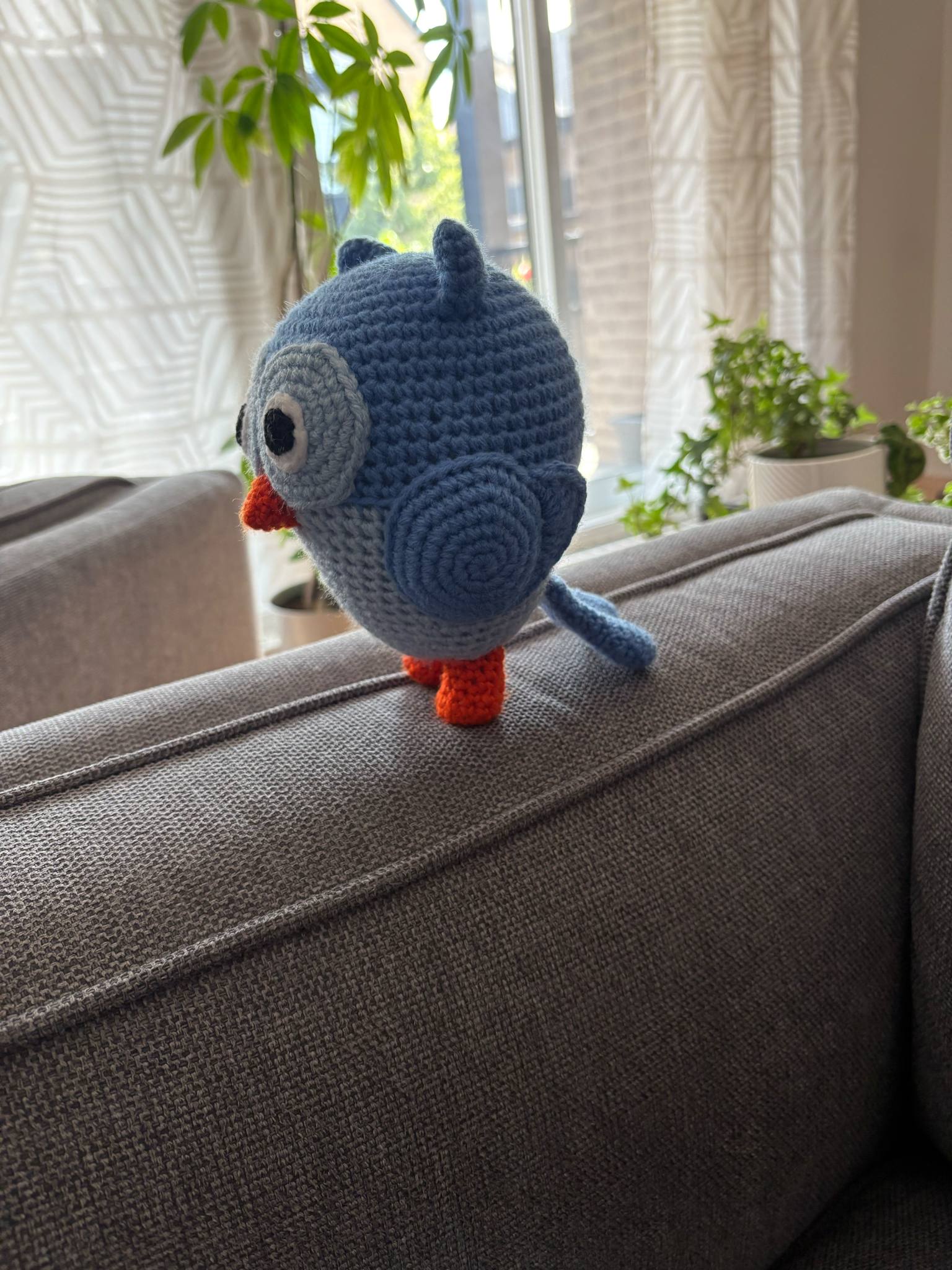 This adorable blue crochet owl is the perfect mix of cozy and cute! Handmade with 100% acrylic yarn and lots of love, it features big eyes, tiny wings, and plenty of personality. Whether perched on a shelf or gifted to someone special, this little owl is sure to bring a smile.