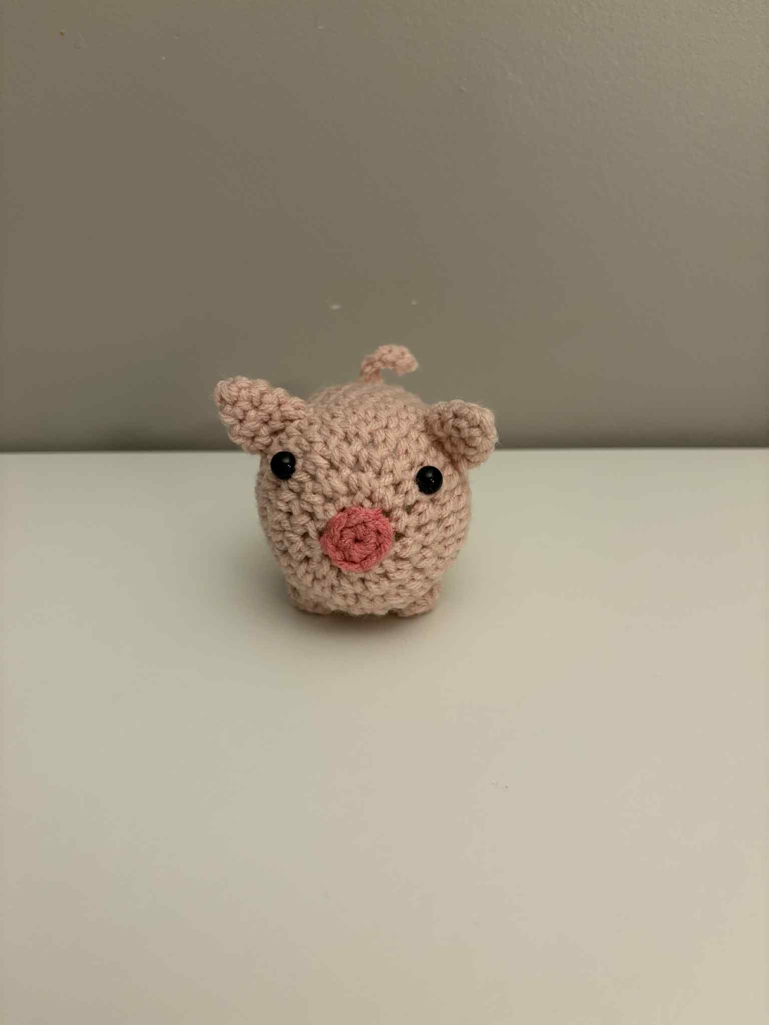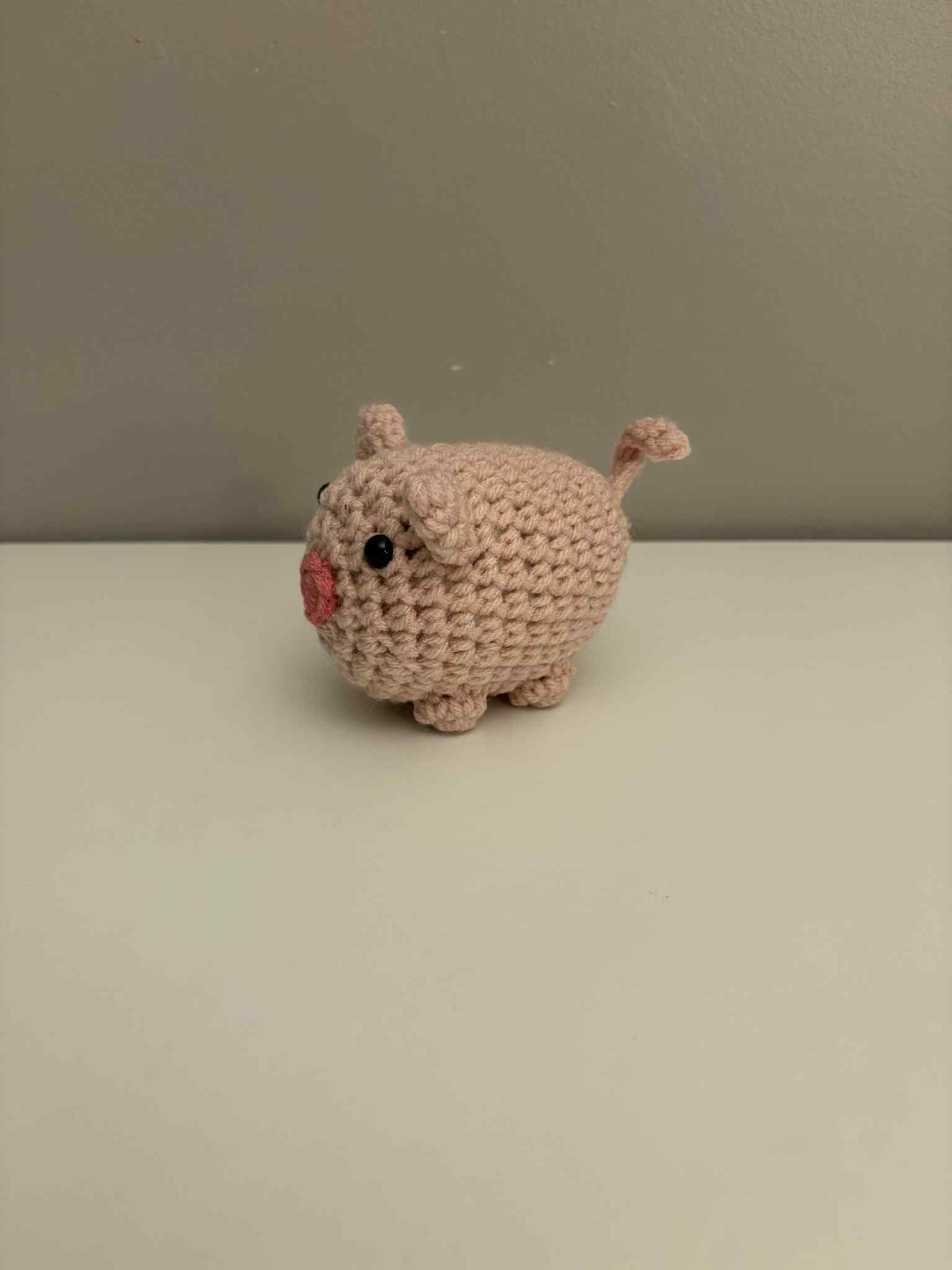 This sweet little crochet pig is handmade with care, making it the perfect addition to your collection or a charming gift. With tiny ears, a curly tail, and a cuddly body, this tiny pig is full of personality and ready to bring a smile.