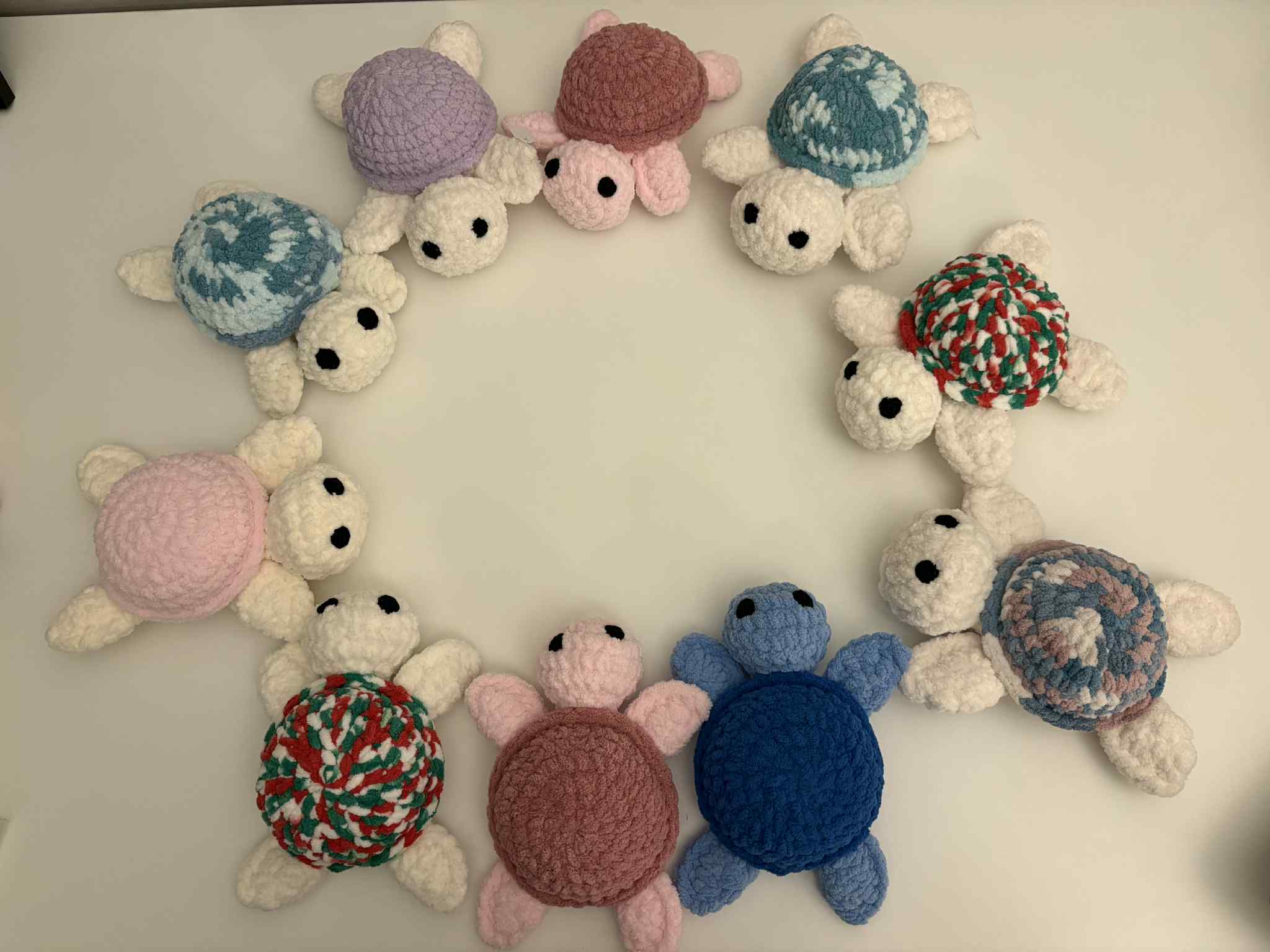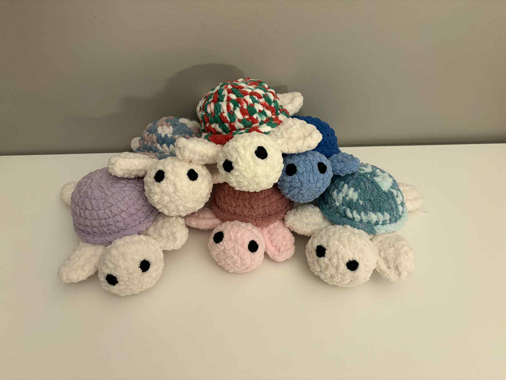 These adorable crochet turtles come in a variety of colors and are handmade with care. Each turtle features a charming shell and little legs, making them a perfect gift, collectible, or fun addition to any crochet critter collection.